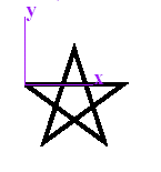 This example uses rotate and translate in a clever way to draw a five-sided star. On the left below is the basic code for the example, while the code on the right shows the actions of this code in a step-by-step way. (See also the Blue book (PDF, 847k) for a discussion of this example on pages 51-53.)