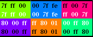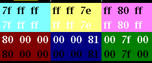 Fourth row not used (1 and 0 as color values at the same time).