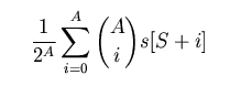 The first program below implements the formula using double precision. The program uses the transcendental function pow to calculate 2A, but this could just be a shift in binary machines. The program also uses the array s that occurs in the formula at the top, but the array is not needed; the partial sums can be calculated on the fly. Notice that no additional accuracy comes from values of N larger than 32.