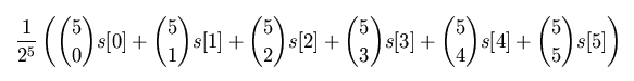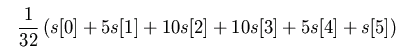 (1/2)((1/2)s[2] + (1/2)s[3]) + (1/2)((1/2)s[3] + (1/2)s[4]) =