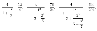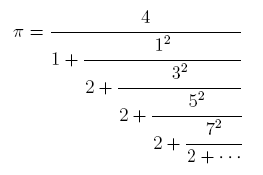 continued fraction expansion for pi at the right.