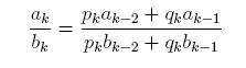 a, b, a1, b1 = a1, b1, p*a+q*a1, p*b+q*b1